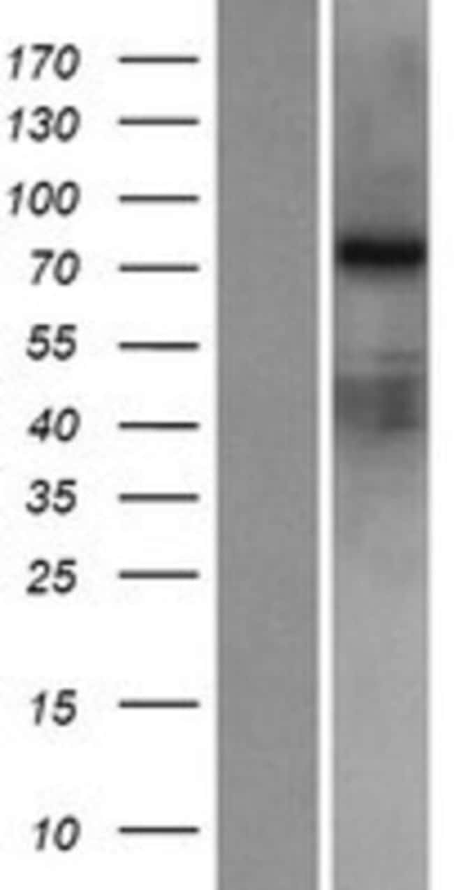 Cell Line | The lysate was created in HEK293T cells, using plasmid ID RC215316 and based on accession number NP_61172. The protein contains a C-terminal DDK tag. |