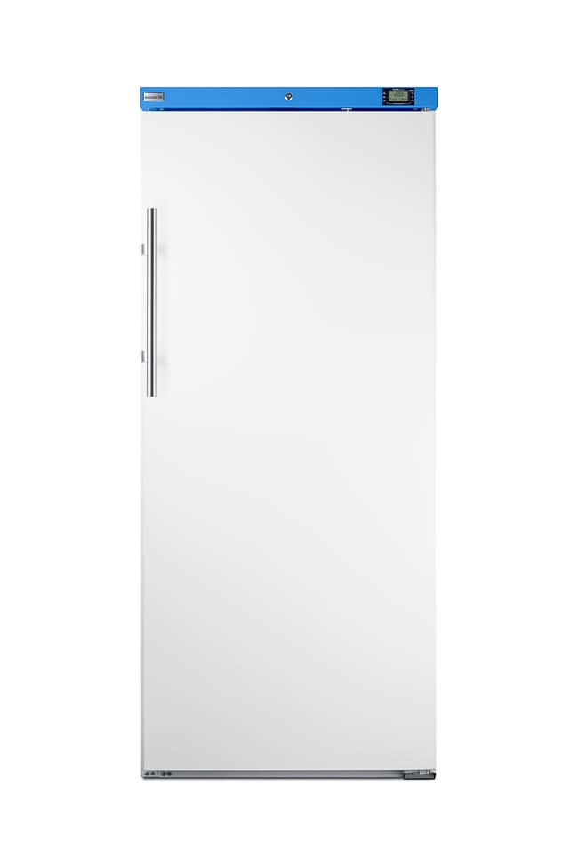 Model URM19W is an upright all-refrigerator with an 18.3 cu.ft. interior storage capacity. Manual defrost operation ensures a more stable interior with none of the warming cycles that can compromise temperature in traditional frost-free cooling systems. The dial thermostat is located inside to prevent accidental temperature adjustments, with a thermometer/alarm mounted externally to ensure a readout of the current and high/low interior temperature is visible without opening the door. The temperature probe is encased in glass beads and positioned in a fixed shelf in the center of the unit to best simulate the temperature of stored items. We include an additional probe hole to accommodate additional monitoring equipmen: https://www.accucold.com/product/URM19W