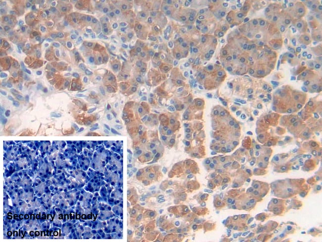 Recombinant protein Regenerating Islet Derived Protein 1 Beta. The antigen corresponds to amino acid range 23-166 of the target protein. | |