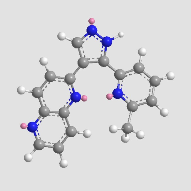 RepSox (CAS 446859-33-2) is a selective small-molecule inhibitor of TGF receptor-1 (TGF R-1) a serine/threonine kinase receptor involved in regulating tumor transformation cell proliferation and differentiation via TGF signaling pathways RepSox inhibits TGF R-1 activity with an IC50 of 23 nM thereby modulating downstream signaling events In cellular studies RepSox facilitated reprogramming of mouse embryonic fibroblasts (MEFs) into induced pluripotent stem cells (iPSCs) by functionally substituting for Sox2 Due to its capacity to significantly alter expression profiles linked to TGF signaling RepSox serves as a useful tool in stem cell research and cellular reprogramming studies