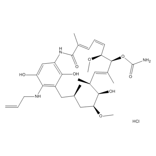 Medchemexpress, HY-10210 1mg Retaspimycin (HCl) CAS:857402-63-2 Retaspimycin Hydrochloride is a potent and water-soluble inhibitor of Hsp90 with EC50s of 119 nM for both Hsp90 and Grp9. Purity:>98% Medchemexpress has over 10000 novel life-science reagents, reference compounds, APIs and natural compounds for laboratory and scientific use. Other quantity can also be offered.