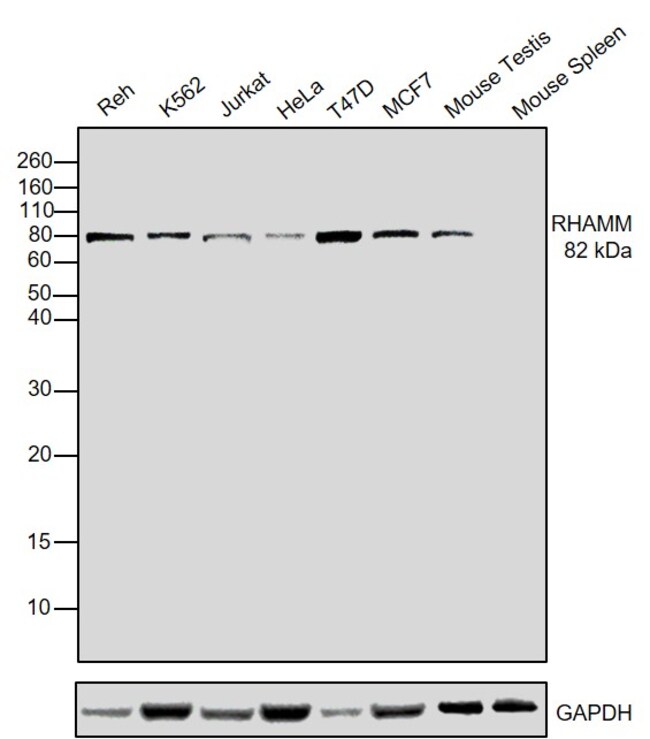 AA386826; CD168; Hmmr; Hyaluronan mediated motility receptor; hyaluronan mediated motility receptor (RHAMM); hyaluronan-mediated motility receptor; hyaluronan-mediated motility receptor (RHAMM); IHABP; Intracellular hyaluronic acid-binding protein; receptor for hyaluronan-mediated motility; RHAMM | |