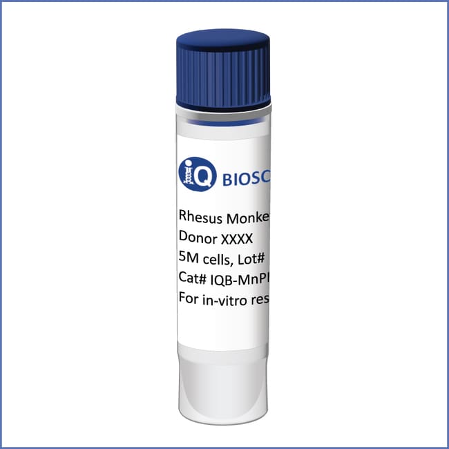 High-quality, high-viability (> 90%) rhesus monkey (or macaque) peripheral blood mononuclear cells (PBMCs) sourced responsibly from a vetted third party facility. Used for a wide variety of safety assessment and functional assays. All orders come with an iQ Certificate of Analysis.The following donor requests can be accommodated if inventory is available: - Single or multiple donors for a particular product (SKU). Indicate number of vials from each individual donor - Donor(s) with a higher percentage of the cells of interest, i.e., B cells, CD14+ cells, CD4+ cells, CD8+ cells, or NK cells