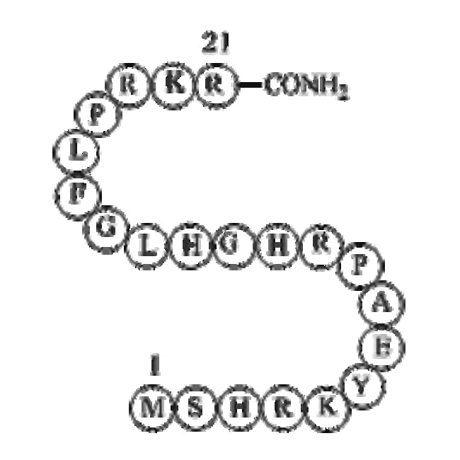 Ribosomal protein L3 peptide (202-222) amide is a synthetic peptide corresponding to residues 202 to 222 of ribosomal protein L3 with the sequence Met-Ser-His-Arg-Lys-Tyr-Glu-Ala-Pro-Arg-His-Gly-His-Leu-Gly-Phe-Leu-Pro-Arg-Lys-Arg-amide and a molecular formula of C114H182N42O25S (Mw 2573) Ribosomal protein L3 is an integral component of the large ribosomal subunit (60S) interacting with 23S rRNA to constitute the ribosome s peptidyl transferase center This particular peptide segment can bind to HIV-1 TAR RNA suggesting its role in studying TAR-mediated transcriptional activation and RNA-protein interactions in molecular virology research