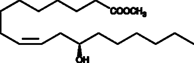 Ricinoleic acid methyl ester is a neutral, more lipophilic form of the free acid that can be used as an analytical standard for ricinoleic acid.
