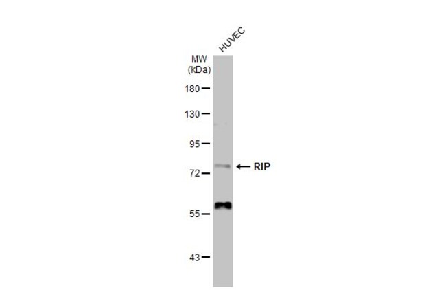 | Recombinant protein encompassing a sequence within the center region of human RIP. The exact sequence is proprietary. | |