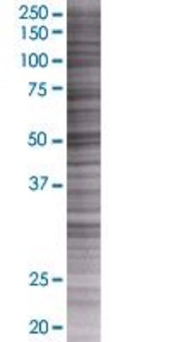 Quality Control Testing | Transient overexpression cell lysate was tested with anti-RNPEPL1 antibody (Mfr. No. H00057140-B01) by Western Blot. |