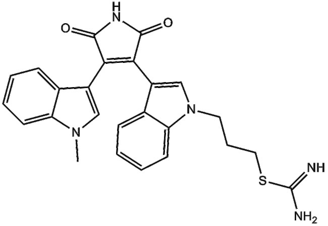 Ro 31-8220 (CAS 125314-64-9) is a potent and selective inhibitor of protein kinase C (PKC) targeting isoforms PKC- (IC50 5 nM) PKC- I (24 nM) PKC- II (14 nM) PKC- (27 nM) and PKC- (24 nM) PKC is a Ca2 and phospholipid-dependent serine/threonine kinase involved in signaling pathways regulating cell proliferation and malignancy Ro 31-8220 modulates downstream signaling by inducing c-Jun expression and activating JNK1 while inhibiting MKP-1 and c-Fos expression independent of PKC activity In immunological studies it suppresses IL-2 production (IC50 80 nM) T cell proliferation (IC50 350 nM) and CD25 expression indicating inhibition of both early and late T cell activation Ro 31-8220 is widely utilized in cellular and molecular studies to dissect PKC-dependent and independent signaling mechanisms