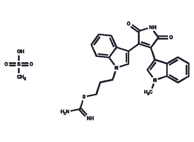 Also available in 1 mg 2 mg 5 mg 25 mg 50 mg 100 mg 1 mL 10 mM (in DMSO) and bulk. Please contact Fisher for quotes. Ro 31-8220 Mesylate (Bisindolylmaleimide IX mesylate) is a pan-PKC inhibitor for PKC-(alpha)/(beta)I/(beta)II/(gamma)/(epsilon) (IC50 5/24/14/27/24 nM) and also shows potent inhibition against MSK1 MAPKAP-K1b S6K1 and GSK3(beta). purity: 99%