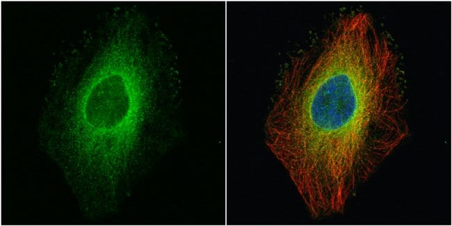 Recommended positive controls: 293T, A431, HeLa, HepG2, NIH-3T3, C2Cl2, rat brain. Predicted reactivity: Human (98%), Mouse (98%), Rat (98%), Zebrafish (90%), Rabbit (98%), Chicken (96%), Rhesus Monkey (98%), Bovine (99%). Store product as a concentrated solution. Centrifuge briefly prior to opening the vial.