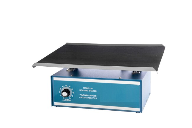 This rocking shaker provides the optimum agitation for blotting membranes or staining gels. Electronic speed control accurately maintains set speed from 4 to 160 motions per minute. Produces a uniform and gentle wave pattern that washes over and under membranes. Adjustable platform with locking tilt can be set from 0 to 20° arc. Can be placed inside an incubator up to 65°C. Five year warranty.