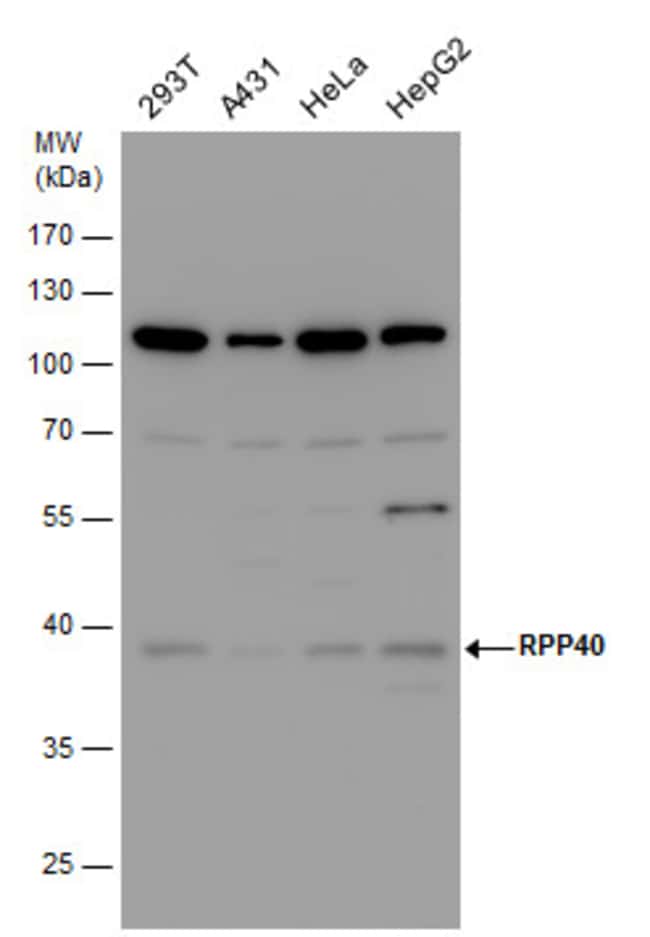 Recombinant protein encompassing a sequence within the center region of human RPP40. The exact sequence is proprietary. | |