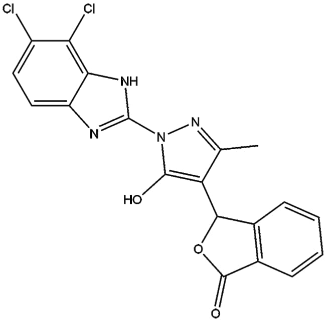 RU 521 (CAS 2262452-06-0) is a selective inhibitor of cyclic GMP-AMP synthase (cGAS) an enzyme responsible for synthesizing cGAMP upon recognition of cytosolic double-stranded DNA By interfering with cGAS-mediated cGAMP production RU 521 suppresses activation of the type I interferon signaling pathway Experimental studies demonstrate that RU 521 reduces cGAS-dependent signal transduction and interferon responses in reporter assays containing double-stranded DNA In macrophages derived from Aicardi-Gouti res syndrome mouse models RU 521 lowers basal interferon expression This compound is a valuable tool for investigating cGAS-dependent innate immune pathways