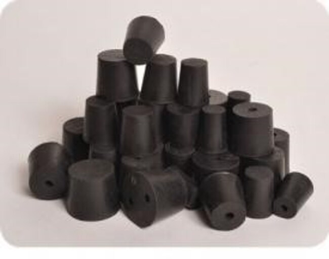 Laboratory Grade Rubber Stoppers offered in a wide range of common sizes for most laboratory applications. Available standard black SBR rubber. Solid rubber stoppers are molded in the USA according to standard industry size specification. Packaged in approximately one pound packages.