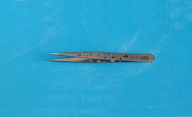 Light weight tweezers have ultra fine presision tips are engineered with a non-slip grip. GRIP. Made from austenitic, acid-proof stainless steel, 100% anti-magnetic (SA). Also resistent to hydrogen fluoride (HF) and nitric acid. Melting point 1400 degree C.