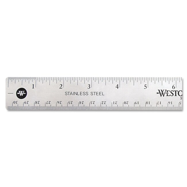 Nearly indestructible warp-free bend-resistant stainless steel ruler is ideal for precision tasks Nonslip cork backing helps ensure precise measurements Attractive bright and tasteful metallic finish fits right into modern office environments Etched bright white standard and metric markings deliver easy readability First and last inches feature 1/32 gradations Drilled hook hole on one end for convenient tool-board storage Ruler Type- Standard/Metric Length- 12 Standard Scale- 1/16 1/32 Metric Scale- Centimeters Millimeters