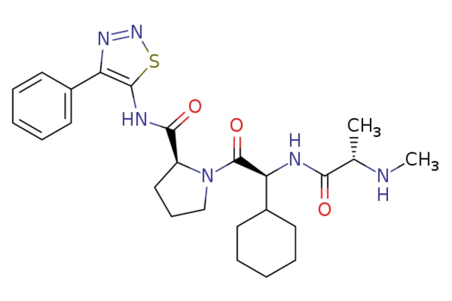 Ambeed / (S)-1-((S)-2-Cyclohexyl-2-((S)-2-(methylamino)propanamido)acetyl)-N-(4-phenyl-123-thiadiazol-5-yl)pyrrolidine-2-carboxamide / 1mg / 552759486 / A852996 / / 873652-48-3 / MFCD26142660 / 498.650 / C25H34N6O3S