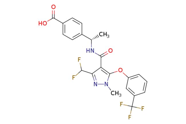 eMolecules Ambeed / (S)-4-(1-(3-(Difluoromethyl)-1-methyl-5-(3-(trifluoromethyl)phenoxy)-1H-pyrazole-4-carboxamido)ethyl)benzoic acid / 1mg / 650568234 / A368414 / / 1369489-71-3 / MFCD30502665 / 483.395 / C22H18F5N3O4