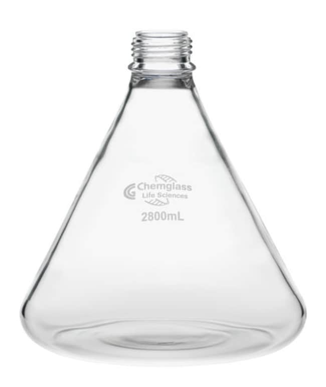Chemglass Life Sciences Flask, Fernbach, 2800mL, WITHOUT Baffles, GL-45 Thread, Vented Cap, Approx OD x Height (mm): 210 x 230