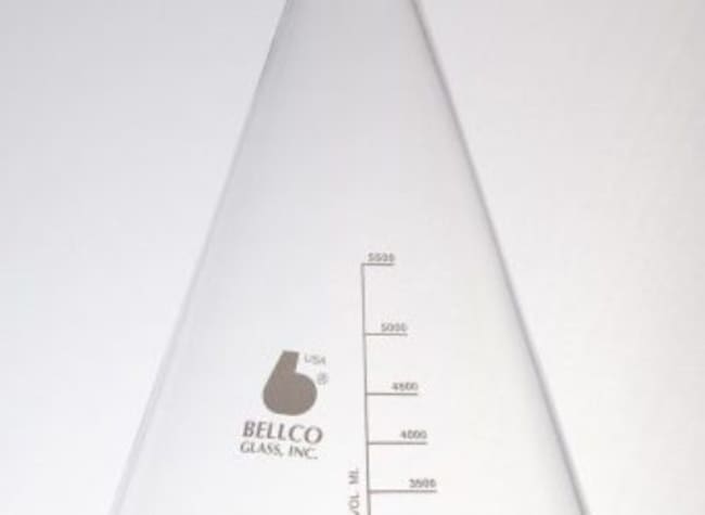 Bellco Glass, Inc. Manufactured from Type 1 Class A Borosilicate Glass. Ideal for culture aerobic & anaerobic organisms, media storage and mixing. Deep skirted screw caps protect against contamination. Supplied with rubber line black phenolic caps and graduated to approximate volumes. Dimensions: 235x390mm