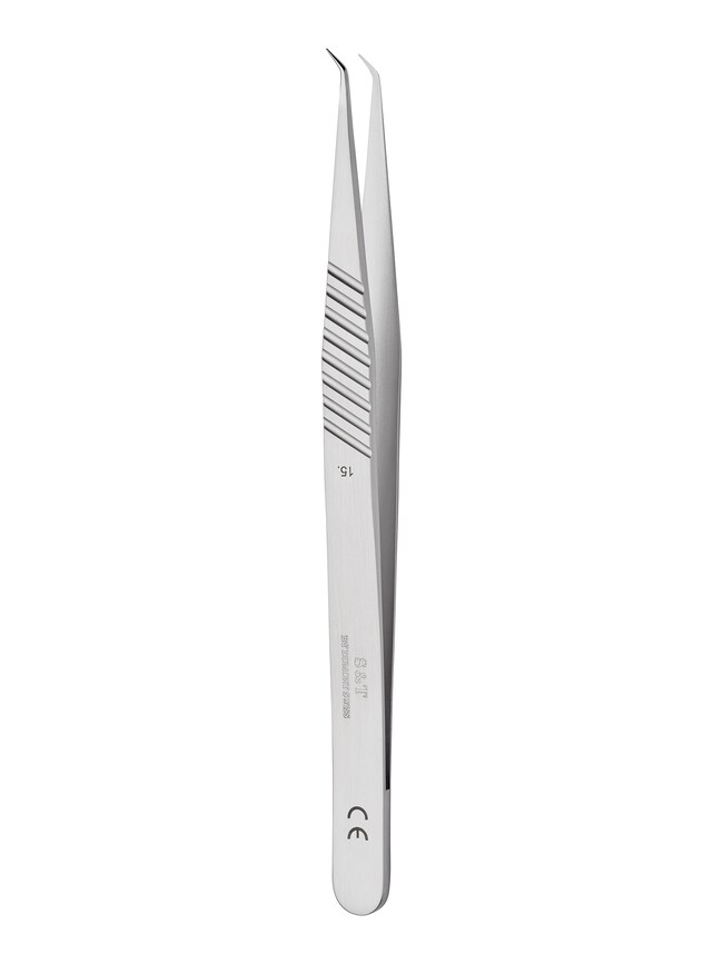 Product: S&T Vessel Dilating Forceps- Angled 45 deg./13.5cm/0.2mm Tip Diameter/ Tip Shape: Angled 45 deg./ Tip Diameter: 0.2mm/ Alloy: Stainless Steel/ Length: 13.5cm/ Unit: Each