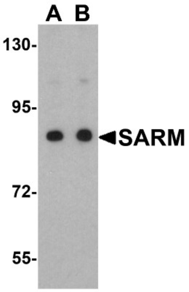 | Antibody was raised against a peptide corresponding to 14 amino acids near the C-terminus of human SARM. The immunogen is located within amino acids 640 - 690 of SARM. Amino Acid Squence: EWPEPQALPEDMQA | |
