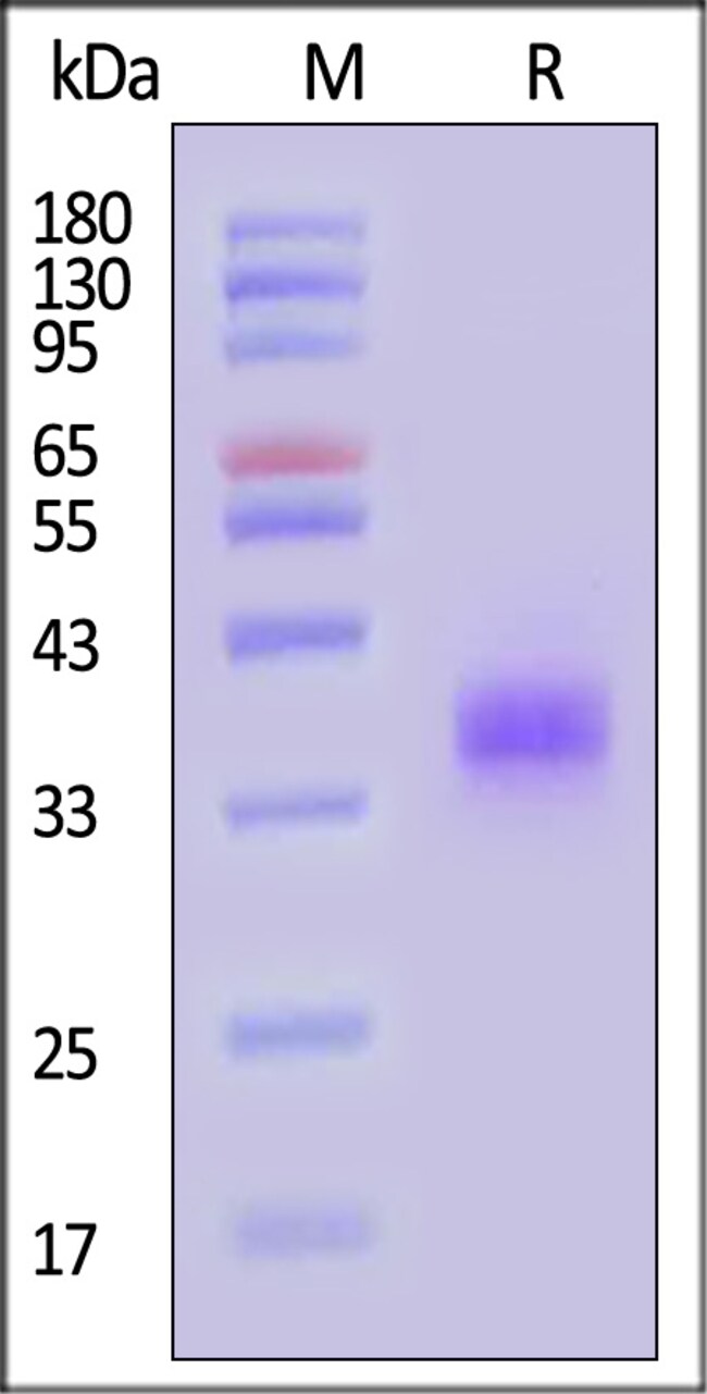 Biotinylated SARS-CoV-2 Spike RBD Protein HisAvitag (BA.2.86/EPI_ISL_18114953) (SPD-C82Q6) is expressed from human 293 cells (HEK293). It contains AA Arg 319 - Lys 537 (Accession # QHD43416.1 (I332VG339HK356TS371FS373PS375FT376AR403KD405NR408SK417NN440KV445HG446SN450DL452WN460KS477NT478KN481KV483delE484KF486PQ498RN501YY505H)). The spike mutations are identified on the SARS-CoV-2 Omicron variant (Pango lineage: BA.2.86/Denmark/EPI_ISL_18114953).