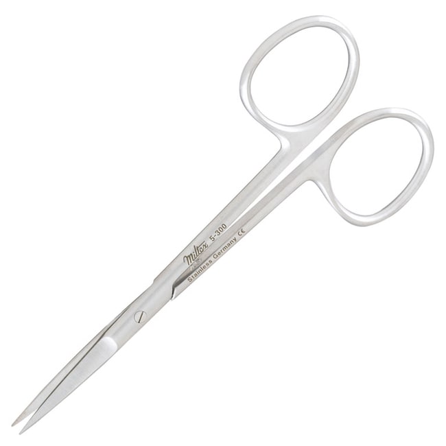 The Miltex 5-300 Iris Scissors have a length of 3.5in. Iris Scissors are a type of surgical scissor with short blades and is commonly used for ophthalmic surgery. This 3.5in. curved Iris Scissors are made of German grade stainless steel.