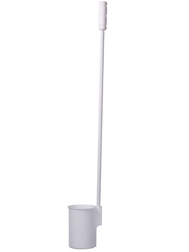All parts coming into contact with the sample medium are made of pure white PTFE. Completely inert against all substances (with the exception of elementary fluoride). The rod is stabilized with a steel core which is completely encapsulated in PTFE. The scoop PTFE with 10 ml (0.34 oz.) has a strong rod with a length of 155 mm (6.10 in.).