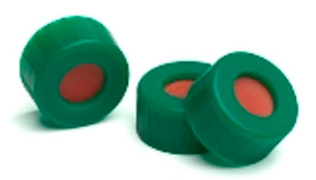 Agilent Cap, screw, green, PTFE/red silicone, 100/pk. Cap size: 12 mm - Screw Caps with Septa for Wide Opening (9 mm) Vials