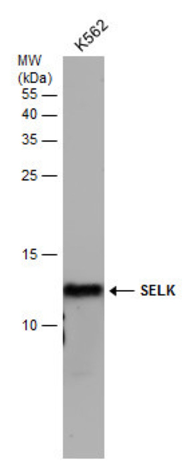 SELK is a selenoprotein, containing a selenocysteine residue at its active site. SELK is localized to the endoplasmic reticulum and is highly expressed in the heart, where it may function as an antioxidant. SELK can bind to proteins such as the ER-associated degradation (ERAD) components p97 ATPase, Derlin-1 and -2, and SelS as well as proteins in the oligosaccharyltransferase complex, suggesting that SELK may be involved in the Derlin-dependent ERAD of glycosylated misfolded proteins. SELK is also thought to be important in Ca2+ flux in immune cells, and is cleaved by m-calpain in resting macrophages. When these macrophages are activated through different Toll-like receptors, this cleavage is inhibited.