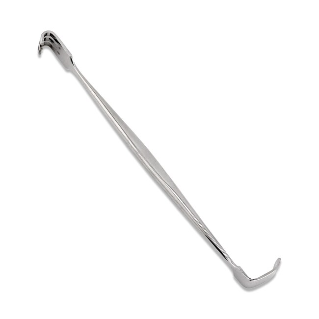 - Double-ended design: one flat blade for gentle tissue lifting and one pronged end for firm retraction