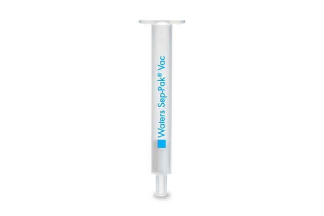Sep-Pak Accell Plus QMA Vac cartridges contain a silica-based, hydrophilic, strong anion-exchanger with large pore size (300Å). The cartridges are designed for extraction of anionic analytes in aqueous and non-aqueous solutions. The large pore size makes it ideal for isolation of larger molecules such as anionic proteins such as immunoglobulins and enzymes. Other applications include isolation of phenolic compounds and removal of acidic pigments in wine, fruit juices, and food extracts. These syringe-barrel-type cartridges are designed for use with vacuum manifolds and automated SPE instruments.