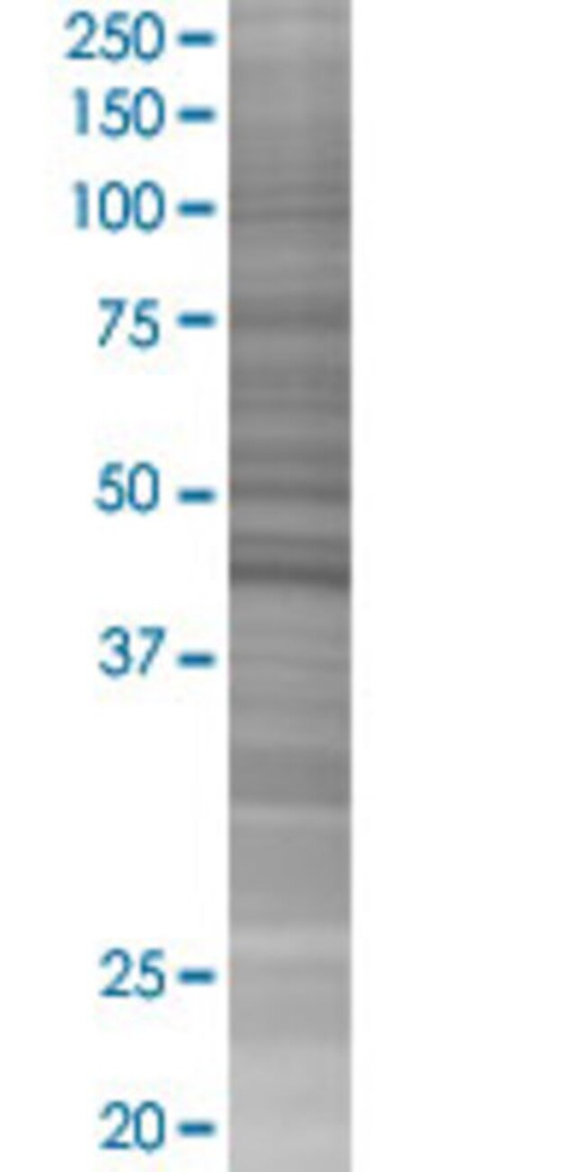 Quality Control Testing | Transient overexpression cell lysate was tested with anti-SEPT5 antibody (Mfr. No. H00005413-D01P) by Western Blot. |