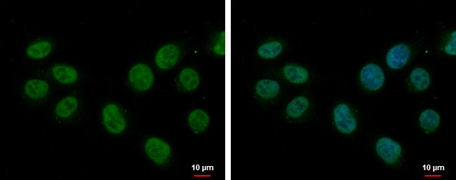 Recommended positive controls: 293T, A431, H1299, HeLaS3, HepG2, Molt-4, Raji. Predicted reactivity: Mouse (99%), Rat (99%), Zebrafish (94%), Xenopus laevis (96%), Rabbit (100%), Bovine (100%). Store product as a concentrated solution. Centrifuge briefly prior to opening the vial.