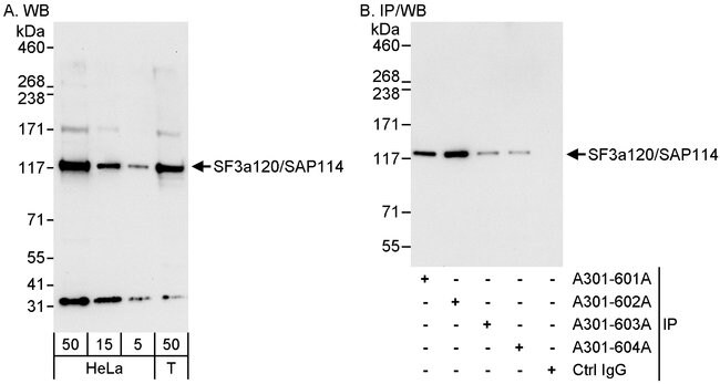 SF3a120/SAP114 Rabbit anti-Human, Polyclonal, Bethyl Laboratories