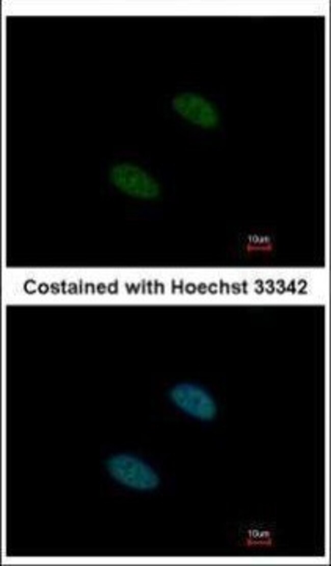 Recommended positive controls: HeLa. Predicted reactivity: Mouse (99%), Rat (98%), Zebrafish (95%), Xenopus laevis (98%), Chicken (98%), Bovine (99%). Store product as a concentrated solution. Centrifuge briefly prior to opening the vial.