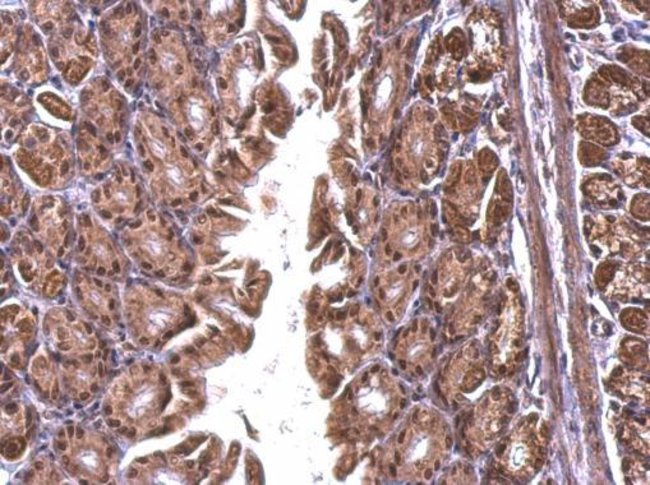 Recommended positive controls: JurKat. Predicted reactivity: Mouse (100%), Rat (100%), Zebrafish (84%), Xenopus laevis (95%), Pig (100%), Chicken (99%), Sheep (99%), Rhesus Monkey (100%), Bovine (100%). Store product as a concentrated solution. Centrifuge briefly prior to opening the vial.