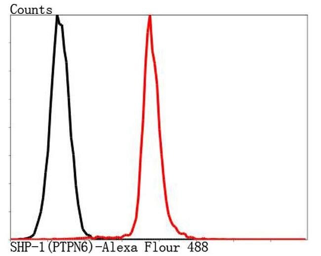 SHP-1 (PTPN6) is a non-receptor protein tyrosine phosphatase that is expressed primarily in hematopoietic cells. The enzyme is composed of two SH2 domains, a tyrosine phosphatase catalytic domain, and a carboxy-terminal regulatory domain. SHP-1 removes phosphates from target proteins to downregulate several tyrosine kinase-regulated pathways. In hematopoietic cells, the amino-terminal SH2 domain of SHP-1 binds to tyrosine phosphorylated erythropoietin receptors (EpoR) to negatively regulate hematopoietic growth. Overexpression of SHP-1 in epithelial cells results in dephosphorylation of the Ros receptor tyrosine kinase and subsequent downregulation of Ros-dependent cell proliferation and transformation. Following ligand binding in myeloid cells, SHP-1 associates with the IL-3R beta chain and downregulates IL-3-induced tyrosine phosphorylation and cell proliferation.