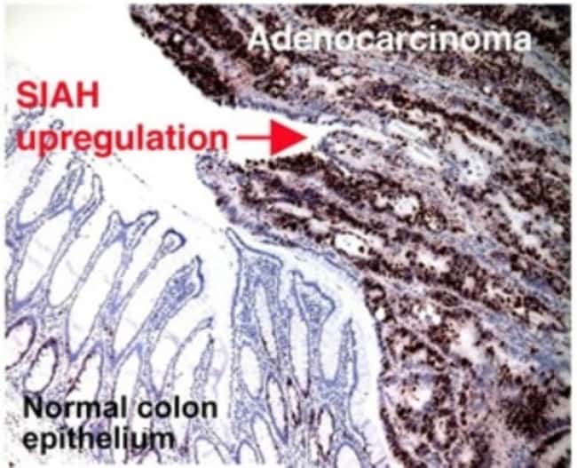 This is specific for human SIAH2 and Drosophila SINA in proliferating cells and stem cells. This does not detect Drosophila SINAH or normal, nondividing cells. | |