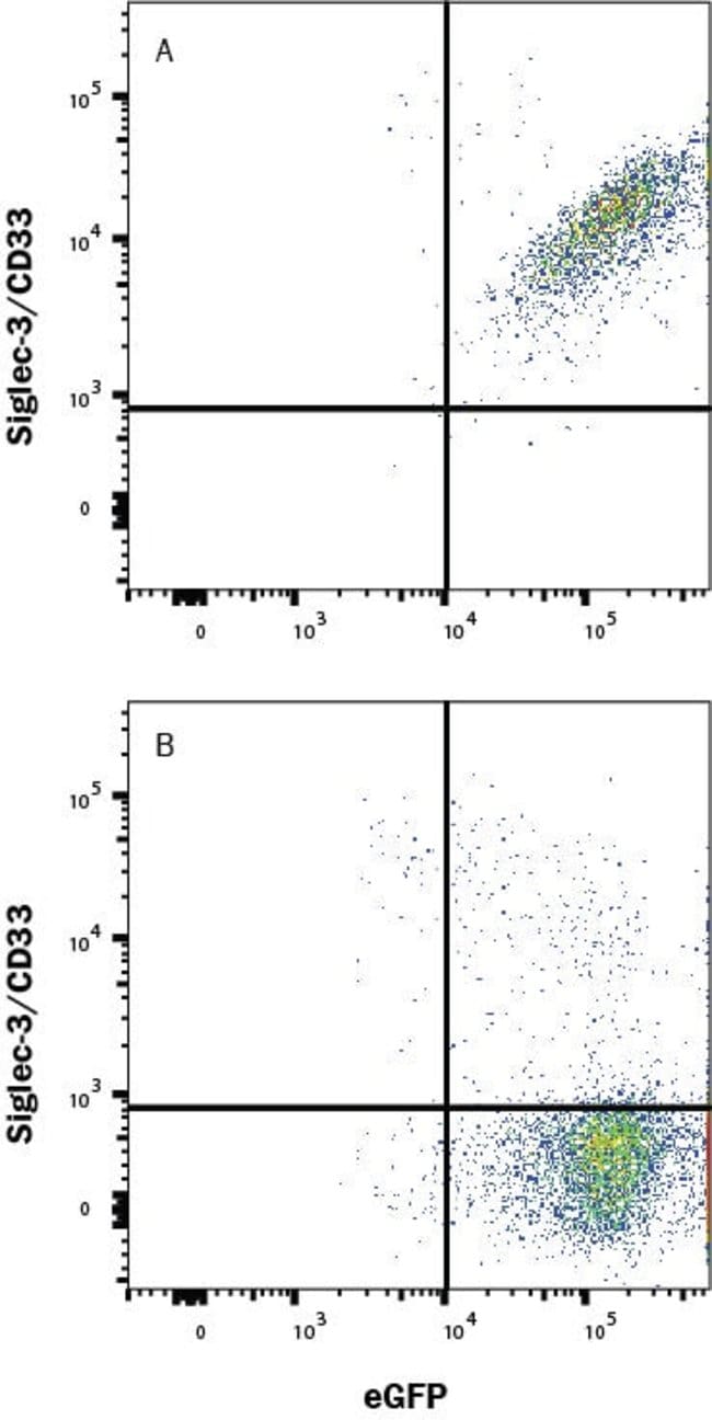 Siglec-3/CD33 Monoclonal antibody specifically detects Siglec-3/CD33 in Human samples. It is validated for Flow CytometrySpecifications