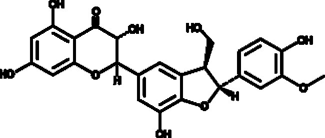 A flavonolignan with diverse biological activities; inhibits MCT8 (IC50 = ~100 nM) and MCT8-dependent uptake of T3 in MDCK cells and primary mouse astrocytes (IC50s = 170 and 50 nM, respectively); scavenges DPPH radicals in a cell-free assay (IC50 = 18.97 µM); inhibits tert-butyl-induced lipid peroxidation in rat liver microsomes (IC50 = 5.45 µM); inhibits P-gp in P-gp-containing membranes (IC50 = 21 µM) and LPS-induced production of NO in RAW 264.7 cells (IC50 = 65 µM)
