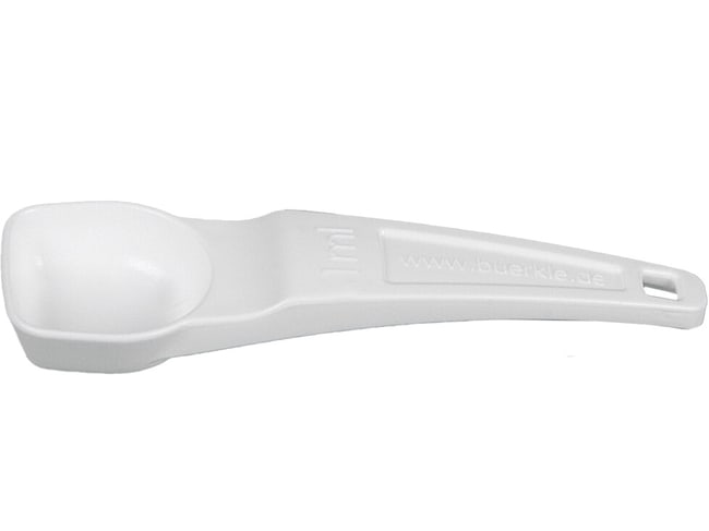 The disposable dosing spoon is suitable for use as a sample spoon for taking small sample quantities. Since the plastic volumetric spoon was developed for single use, there is no cleaning and the possibility of cross-contamination and impurities is excluded.