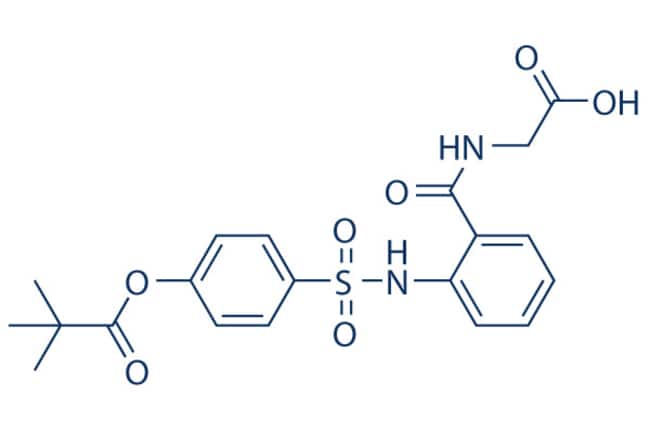 Sivelestat (ONO5046, LY544349, EI546) is a potent and selective inhibitor of neutrophil elastase with IC50 of 44nM. It almost shows no activity at a range of other proteases. *For Research & Development use only. Product is not intended for drug, household, or human consumption.