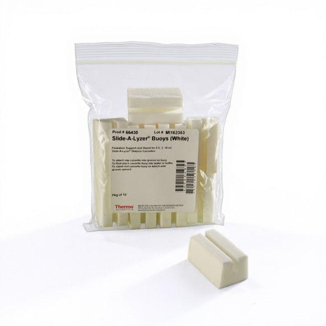 Slide-A-Lyzer Dialysis Cassette Syringes are designed for efficient loading of samples into Slide-A-Lyzer cassettes and removal of sample after dialysis. Cassette Float Buoy accessories are for use with Slide-A-Lyzer Dialysis Cassettes used to remove low molecular weight contaminants and perform buffer exchange, desalting, and concentration.