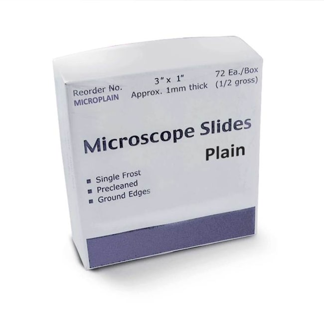 Pre-cleaned, high quality glass. Hard, colorless, non-corrosive. Ground, polished edges. 1"X3" 72 per box.