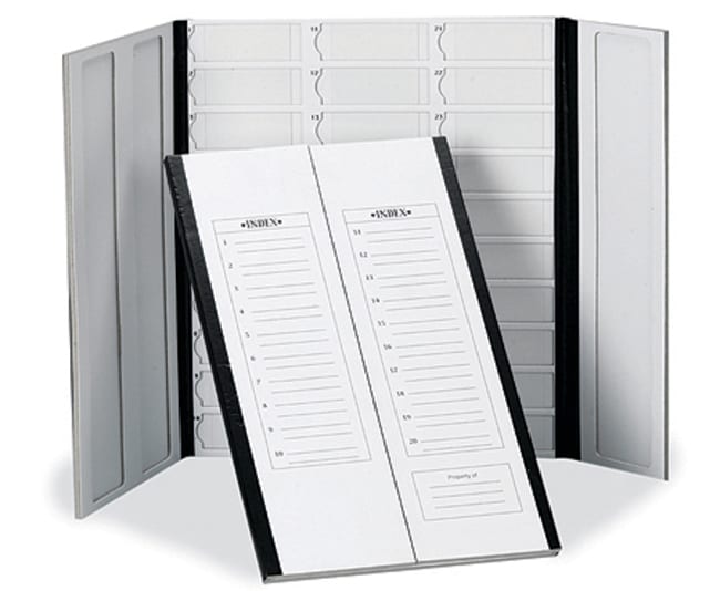 Cardboard Slide Trays provide an economical and convenient method for storing slides. Slides are easily inserted into individual horizontal compartments that have a cutout to facilitate removal. Hinged cover features a printed location index and protects slides when closed.