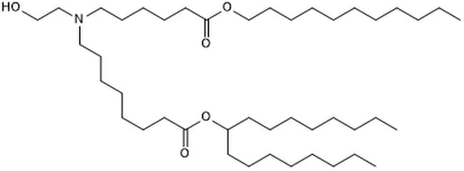 SM 102 is an ionizable cationic lipid (pKa = 6.68) used in the formulation of lipid nanoparticles (LPNs) for the delivery of mRNA in vitro and in vivo. Administration of LNPs containing SM 102 induces hepatic luciferase expression in mice. SM 102 is commonly formulated with cholesterol (Cat. No. 7945), DSPC (Cat. No. 7943), and DMG-PEG 2000 (Cat. No. 7944).