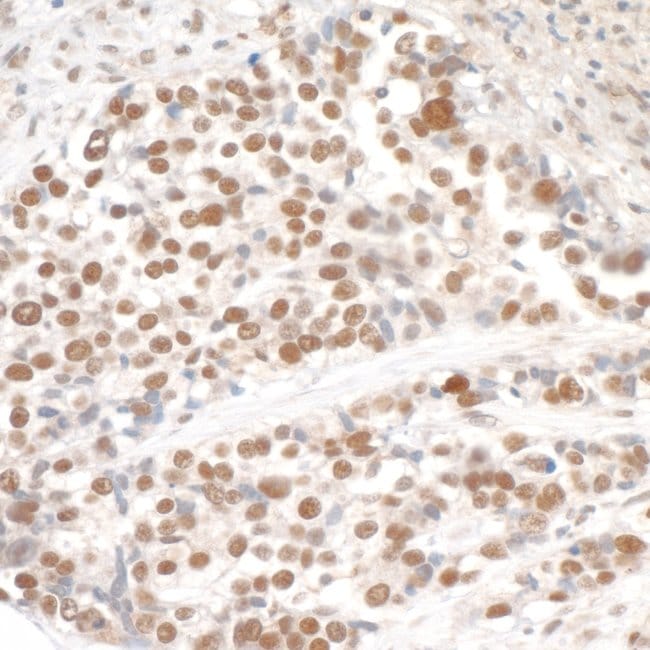 The recommended shelf life for this product is 1 year from date of receipt. Application Note: For IHC, epitope retrieval with citrate buffer pH 6.0 is recommended for FFPE tissue sections. Based on 100% sequence identity, this antibody is predicted to react with Bovine and Orangutan