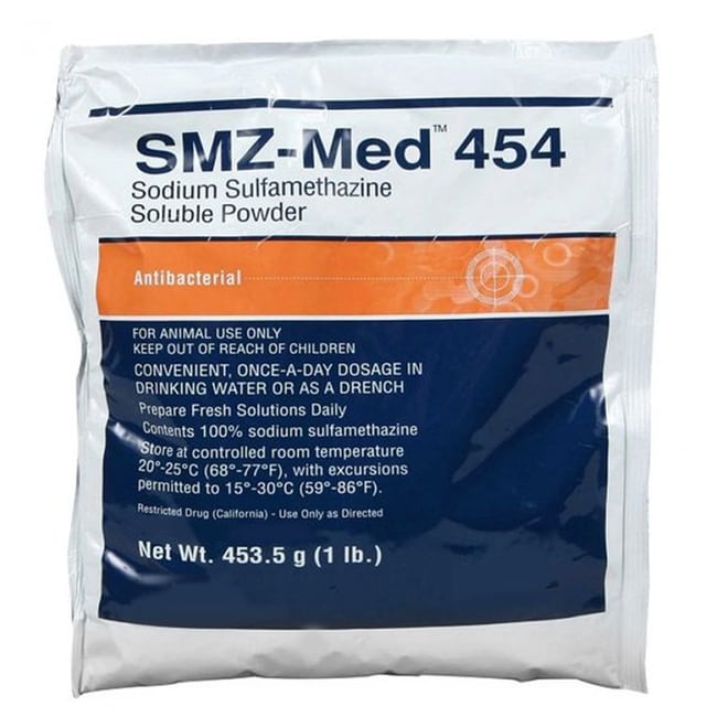 Med Vet International Mz-Med 454 (Sodium Sulfamethazine) Soluble Powder, Antibacterial, 1Lb